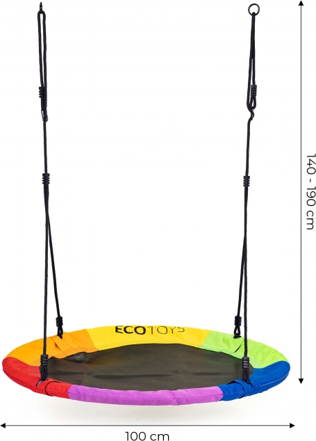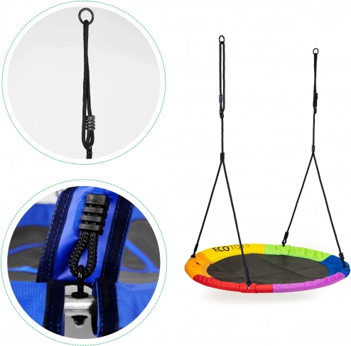 De tuinschommel "ooievaarsnest" zorgt voor langdurig buitenspeelplezier voor kinderen! De ideale oplossing voor de thuis-tuin of een speelplaats. Dankzij de hoogteverstelling van de touwlengte kan de schommel ook worden aangepast aan de lengte van de kleinste gebruikers, wat het gebruik vergemakkelijkt.