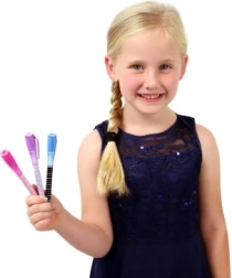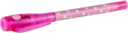 Ontdek de magie van geheim schrijven. De ene kant van de pen dient als normale balpen voor dagelijkse notities, de andere schrijft met onzichtbare inkt die oplicht wanneer je deze met UV-licht belicht. Dankzij het compacte formaat van 15 cm ligt hij prettig in de hand en past hij perfect in het schooletui.