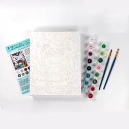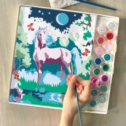 De schilderen-op-nummer set met eenhoornmotief is een geweldige keuze voor ontspannen knutselen thuis. Dankzij de voorbedrukte vlakken met nummers word je stap voor stap begeleid en geniet je van een rustige, geconcentreerde bezigheid met een prachtig resultaat.