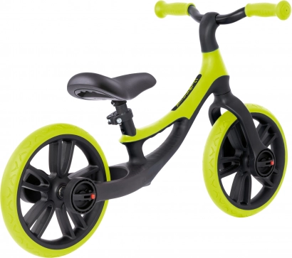 De lichte en duurzame kinderloopfiets GLOBBER Go Bike Elite Duo in limegroen helpt kinderen van 2–5 jaar om balans, coördinatie en stuurvaardigheid te ontwikkelen. Met een verstelbare zithoogte, ergonomisch stuur en wielen van hoogwaardig TPE voor comfortabel en stabiel rijden.