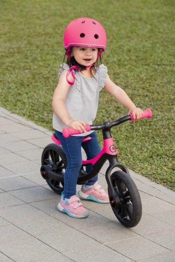 De GLOBBER Go Bike Elite loopfiets is de ideale eerste fiets voor jonge rijders. Een lage instap, stabiele geometrie en lichtgewicht constructie maken de start eenvoudig, terwijl de hoogwaardige 10" TPE-wielen oneffenheden soepel dempen zonder te hoeven oppompen. Dankzij de twee standen van de zadelverstelling groeit de loopfiets met je kind mee en ondersteunt hij goede gewoonten vóór de overstap naar een trapfiets.