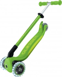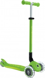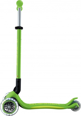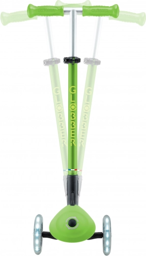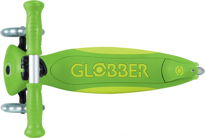 De GLOBBER Primo Foldable Plus Lights-step blinkt uit door de combinatie van stabiliteit, veiligheid en plezier. Twee grote voorwielen van 120 mm met LED’s op dynamo vallen direct op en verbeteren de zichtbaarheid. Het lage en brede deck met anti-slip oppervlak ondersteunt een zekere houding en makkelijke controle voor beginnende rijders.
