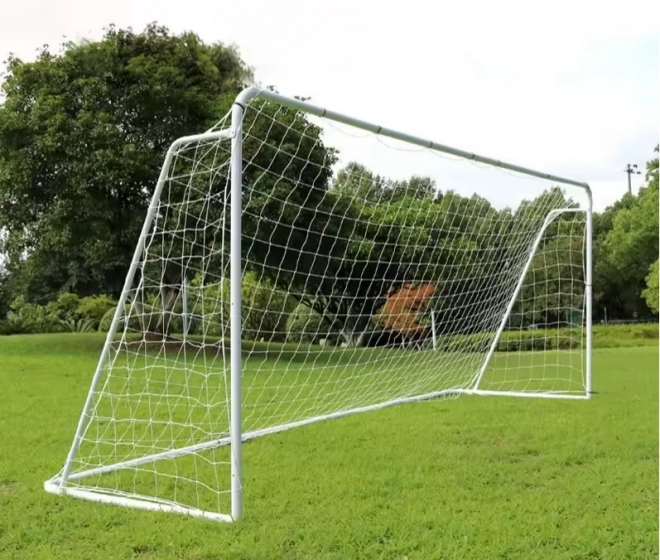 De montage van het doel duurt slechts 15 minuten dankzij de eenvoudige verbinding van onderdelen met kliksloten. De set bevat metalen pinnen voor bevestiging aan de grond, wat veiligheid en comfort tijdens het spel garandeert.