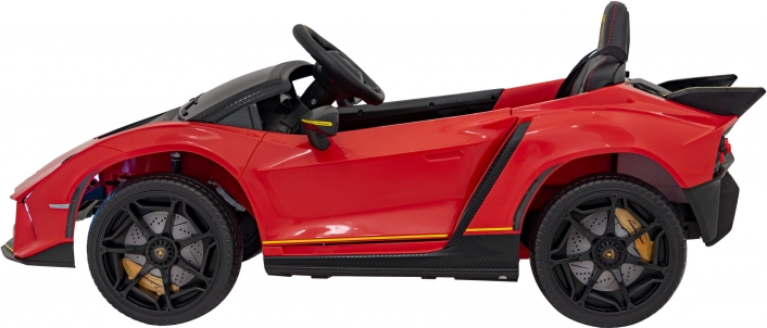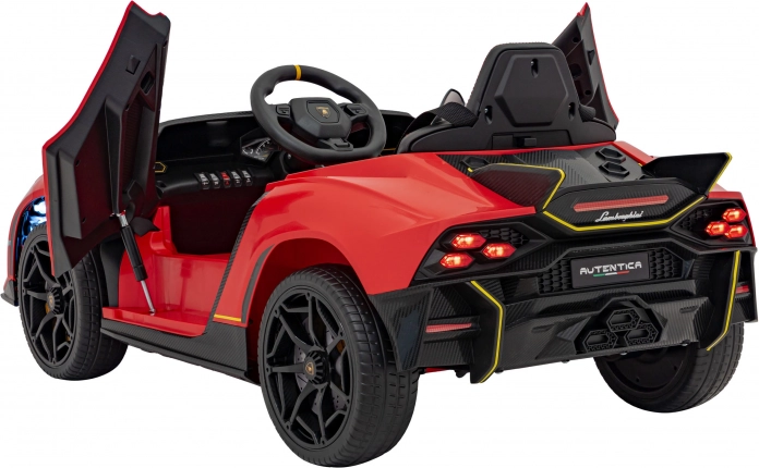 De luxe elektrische kinderauto Lamborghini Invencible in opvallend rood is de perfecte keuze voor kleine liefhebbers van snelle wagens. De krachtige 12 V / 7 Ah accu en vier 4x35 W motoren zorgen voor een vloeiende en leuke rit, terwijl slow-start en de keuze uit 2 snelheden vooruit en achteruit het comfort en de veiligheid verhogen.