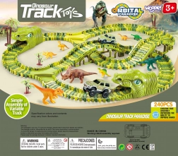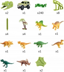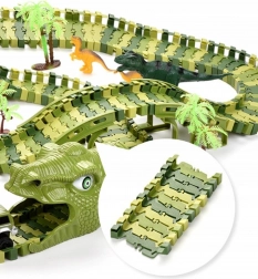 Bouw voor kinderen een wereld van prehistorische avonturen. De set bevat alles voor lang en creatief speelplezier: een modulaire groene baan, 8 dinosaurussen (waarvan 2 groot), 2 tunnels in de vorm van een dinosaurushoofd, bruggen, boompjes en een elektrisch autootje op een AA-batterij. De delen klik je eenvoudig in elkaar en vormen een circuit waarop het autootje vanzelf rijdt.