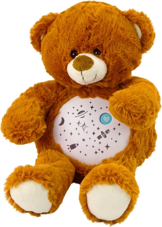 Wanneer de avond valt, schakelt de beer over naar de nachtmodus en wordt hij een metgezel voor rustig inslapen. Gemaakt van hoogwaardig, zacht materiaal, veilig voor de tere kinderhuid.