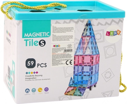 Magnetische bouwset met 59 kleurrijke panelen biedt kinderen uren aan creatieve speel- en leermomenten. De onderdelen met geïntegreerde magneten klikken eenvoudig aan elkaar, constructies zijn stabiel en kinderen ontwikkelen hun fijne motoriek, creativiteit en logisch denken. Hoogwaardige en veilige materialen, een elegante halftransparante look en een praktische opbergbox met handgrepen voor eenvoudig meenemen.