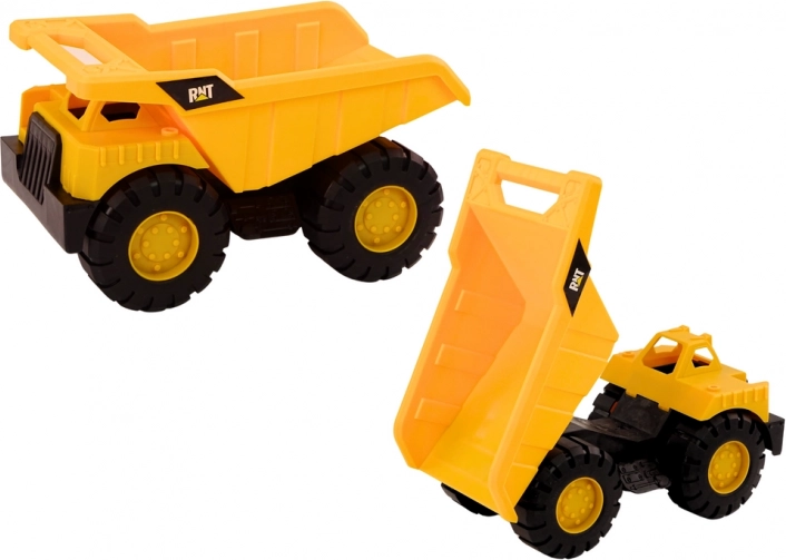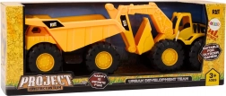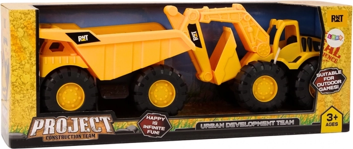 Bouwmachines set: kiepende graafmachine verhuiswagen geel