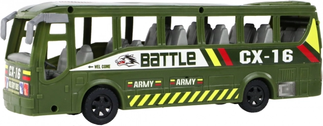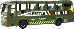 Robuuste groene bus/transporter met legeropschriften breidt de speelmogelijkheden op de grond uit. Ideaal voor het transport van eenheden en uitrusting.