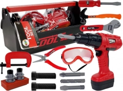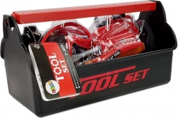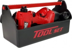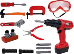 De gereedschappen zijn van plastic en tot in detail uitgewerkt. Dankzij de koffer waarin ze verpakt zijn, kunt u het gereedschap na het spelen altijd op zijn plek opbergen. De boormachine klinkt als een echte en is perfect gevormd om in elk klein handje te passen. Voor voldoende bescherming hebben we een veiligheidsbril toegevoegd. De kleuren van de set zijn rood, zwart en grijs.