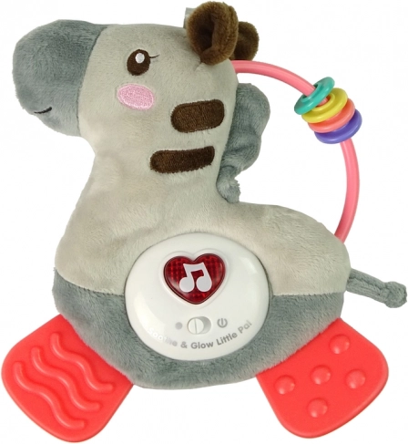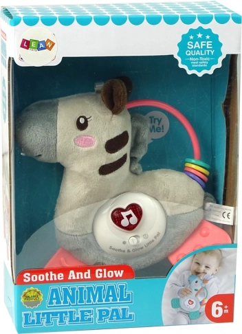 De interactieve zebra van zachte pluche biedt kinderen zowel plezier als rust. Het lichtgevende hartje start melodieën en trekt de aandacht, terwijl de zachte bijtspeeltjes aan de pootjes verlichting geven bij doorkomende tandjes. Vier kleurrijke ringen op de rug werken als een rammelaar en ondersteunen de grijpreflex en manipulatietechnieken.