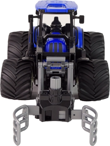 De blauwe cabine, het opvallende loopvlak van de wielen en de voorste aanbouw geven een authentieke look van een landbouwmachine die ieder kind zal aanspreken.