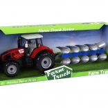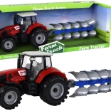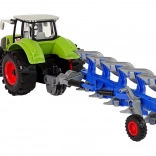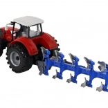 De set bevat ook een blauw-zilveren ploeg die draait en omhoog komt tijdens het rijden met de tractor. Wanneer je de ploeg wilt gebruiken, hoef je alleen het wiel op te tillen en zakt de ploeg naar beneden, wat een effectieve simulatie van ploegen tijdens het spel mogelijk maakt.