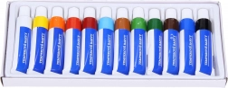 Kwalitatieve tempera verven in een metalen set voor school, hobby en kunstenaars. De verf brengt gemakkelijk aan, dekt uitstekend, is lichtecht en met water verdunbaar. Dankzij de schroefdoppen drogen ze niet uit en kunnen ze na droging opnieuw met water worden aangeroerd.
