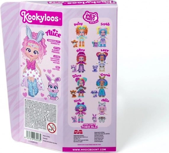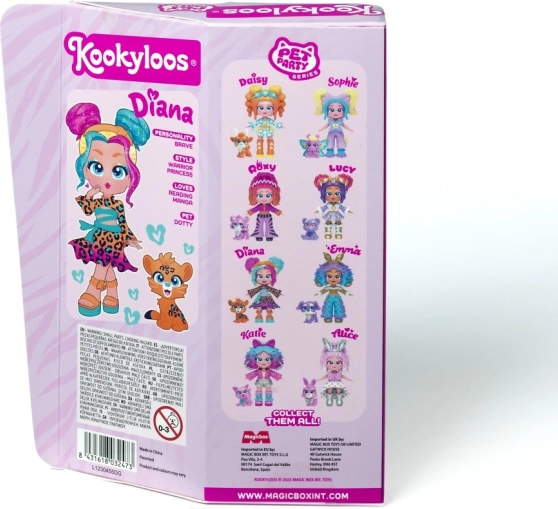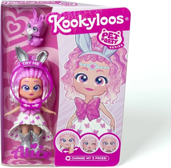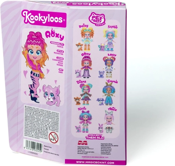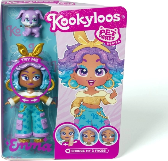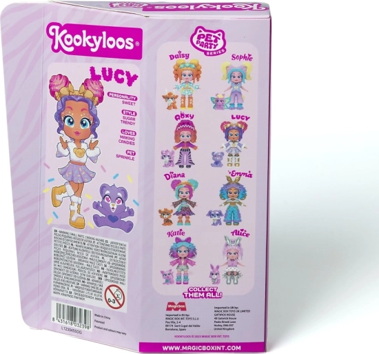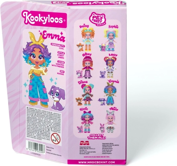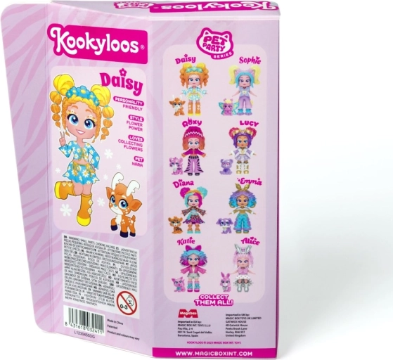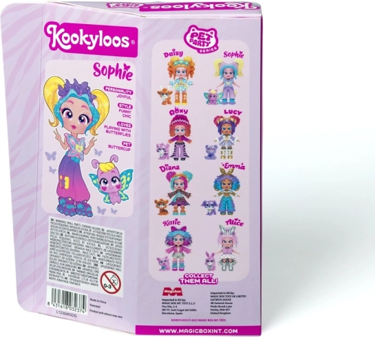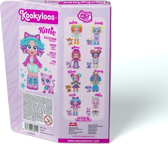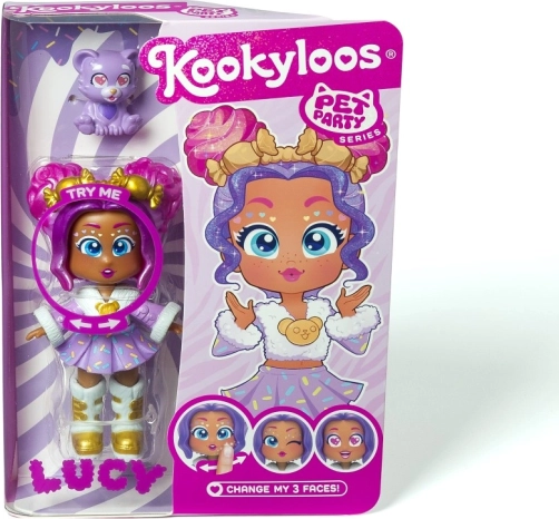 Maak kennis met Lucy, Sophie, Katie, Roxy, Alice, Daisy, Diana en Emma – de sterren van de KOOKYLOOS Pet Party-serie. Elke pop komt met een unieke stijl, een parelmoerglanzende outfit en een klein diertje dat haar persoonlijkheid benadrukt. Dankzij het slimme mechanisme is één klik genoeg en verandert de gezichtsuitdrukking – plezier dat nooit verveelt.