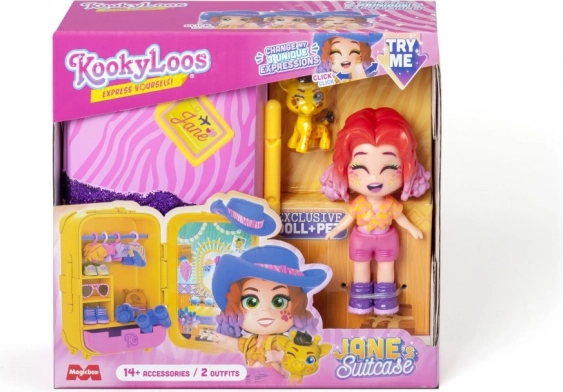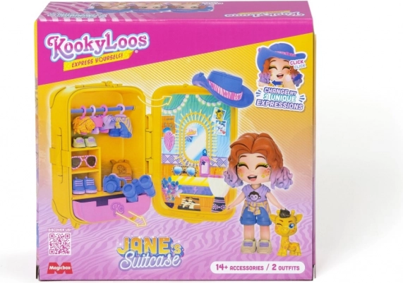 Met de KookyLoos koffer betreed je een magische fantasiewereld! Dit geweldige speelgoed bevat de pop Jane, klaar voor al je avonturen. Ze heeft rood haar en een brede glimlach en komt met 14+ mode-accessoires! Jane is ideaal voor safari of een ander avontuur.