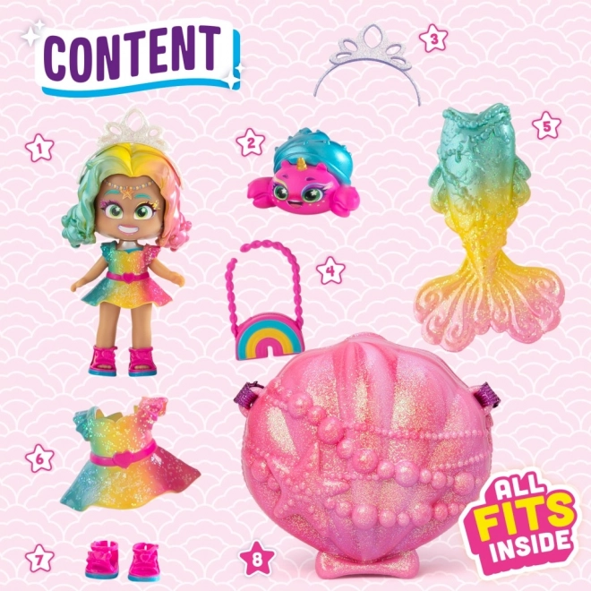 De pop Coral is uitgerust met een verwisselbare staart, waardoor een eenvoudige overgang mogelijk is tussen zeemeermin en gewone kleding.