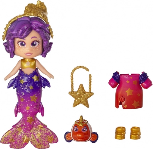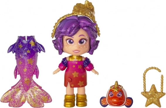De pop Zeemeermin Star biedt een fascinerende transformatie van een zeemeermin naar een schoonheid met modieuze accessoires, dankzij de afneembare staart.