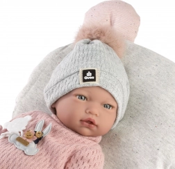 Deze realistische babypop zal elk kind blij maken met zijn authenticiteit en aangename afwerking. Bij zacht indrukken van de borst geeft hij een vrolijke lach, wat de verbeelding prikkelt en sociale vaardigheden tijdens het spel ontwikkelt. Het zachte stoffen lichaam voelt prettig aan en de op scharnieren bevestigde armen en benen maken makkelijk positioneren en zitten mogelijk.