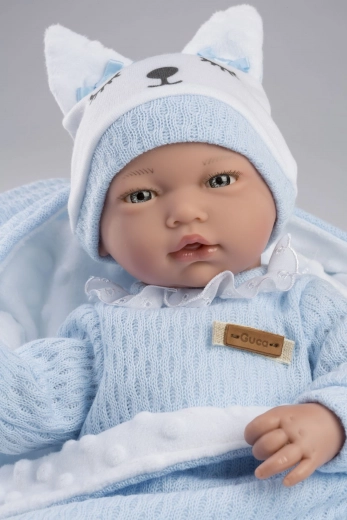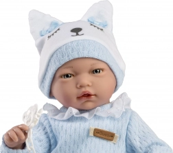 Deze realistische geluidspop heeft een zacht stoffen lichaam voor gezellige knuffelmomenten en speels plezier. Het is uitgerust met gewrichten op de armen en benen die positionering en zitten mogelijk maken, waardoor gevarieerd spel wordt gestimuleerd. De pop wordt geleverd met een fopspeen als accessoire en is met de hand gemaakt in Spanje, wat een gevoel van exclusiviteit geeft.