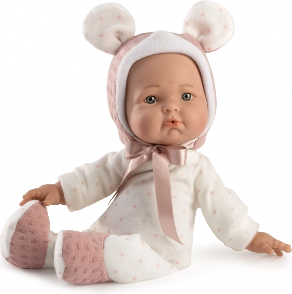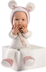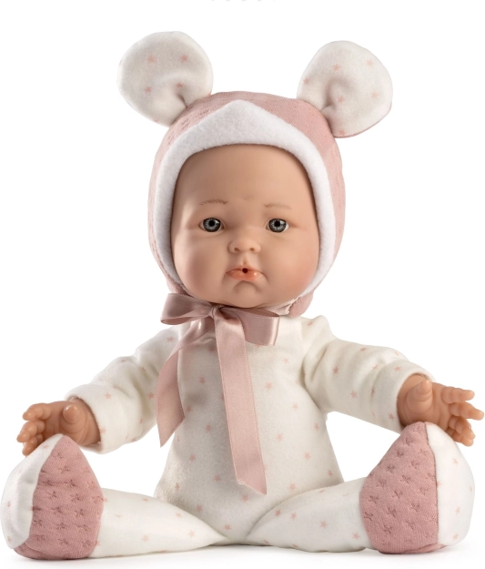 Ervaar de magie van Spaanse handgemaakte kwaliteit met deze realistische pop, ideaal voor kinderen vanaf drie jaar. Haar zacht stoffen lichaam biedt een ongelooflijk zacht gevoel en is perfect voor knuffelen, terwijl haar vinyl ledematen en hoofd duurzaamheid bij het spelen bieden.