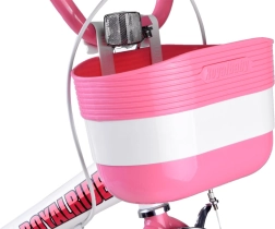 Veiligheid staat voorop: de fiets heeft een volledige kettingkast tegen vuil en verwondingen, handremmen aangepast aan kinderhanden, zachte stuurpadding en reflectoren voor betere zichtbaarheid. Kinderen worden blij van het speelse design met een mandje, bel en linten aan het stuur.