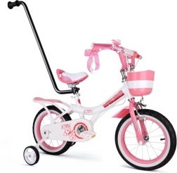 ROYALBABY Jenny 14'' is een zorgvuldig ontworpen kinderfiets voor beginners. Dankzij de breed geplaatste zijwieltjes en de duwstang helpt hij balans en vertrouwen in het zadel op te bouwen. Het duurzame stalen frame, opblaasbare rubberen banden en ergonomisch gevormde componenten bieden comfort en stabiliteit bij elke rit.