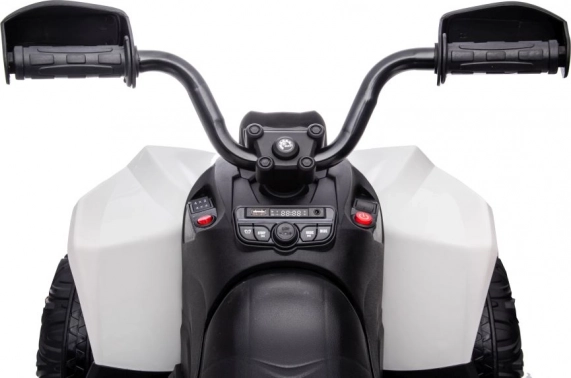 Het model in een elegante wit-zwarte combinatie met een gele voorbeschermer oogt sportief en modern. Getextureerde banden zorgen voor betere tractie en wendbaarheid, terwijl realistische details – zoals koplampen en een bedieningspaneel – een authentieke rijervaring ondersteunen.