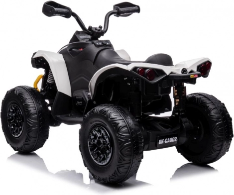 De wit-zwarte uitvoering met gele voorbeschermer geeft de quad een aantrekkelijke look en het gevoel van een echte ATV.
