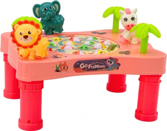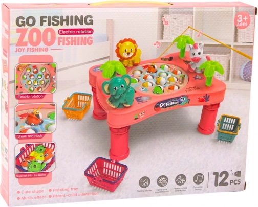 Het roze speeltafeltje met het thema “Go Fishing” tovert de kinderkamer om tot een klein aquarium. De draaiende schijf met visjes die hun mond openen zorgt voor een dynamische uitdaging die kinderen motiveert tot precies mikken en snel reageren. Dankzij de felle kleuren, vrolijke dieren en melodieën is het spel geliefd bij jong en oud.