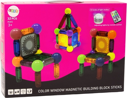 Ontdek de creatieve wereld van constructies met deze magnetische bouwset met 32 delen. Dankzij de magneten verbinden de onderdelen eenvoudig en stevig, zodat je onder verschillende hoeken kunt bouwen en stabiele vormen kunt creëren. Inclusief een LED-lampje met afstandsbediening en veranderbare kleuren, dat je creaties een uniek effect geeft. Een geweldige keuze voor het stimuleren van creativiteit, ruimtelijk inzicht en fijne motoriek bij kinderen vanaf 3 jaar.