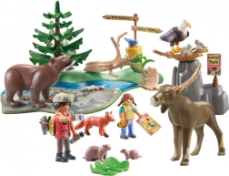 - Rijke uitrusting: 2 menselijke figuren (man ca. 7,5 cm, meisje ca. 5,25 cm), grizzly, zeearend, eland, vos, 2 marmotten, 3 zalmen, vogel, basis met rivier, naaldboom, wegwijzer, fototoestel, verrekijker.