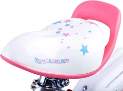 De stijlvolle kinderfiets RoyalBaby Star Girl met 14″ wielen is ideaal voor de eerste ritjes. Biedt stabiliteit dankzij de zijwieltjes, veilige handremmen, een volledige kettingkast en een comfortabel zadel met handgreep. Inclusief voormandje, bel en kleurrijke linten aan het stuur – alles voor vrolijk en veilig leren fietsen.