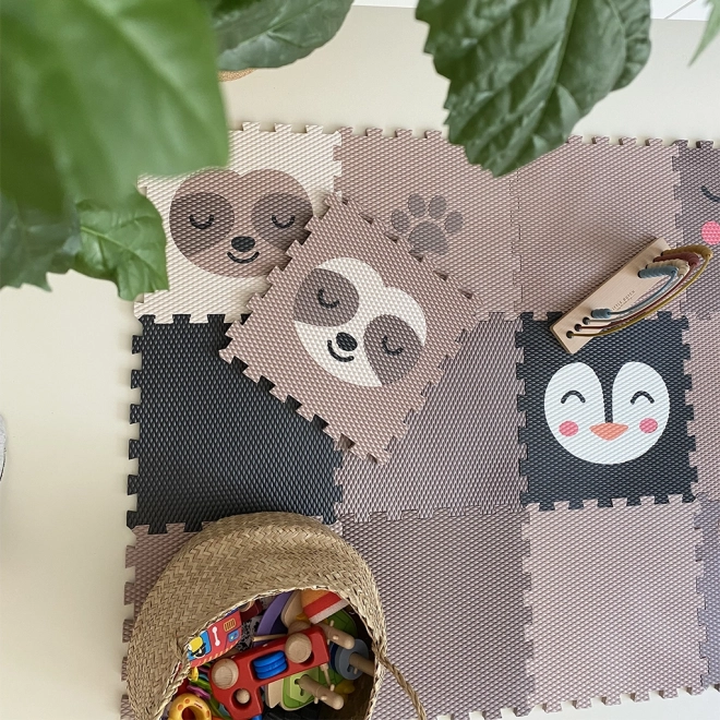 Deze charmante Minideckfloor met luiaardmotief brengt speelsheid en warmte in het interieur. De bruine basis met een crèmekleurige luiaard oogt veelzijdig en past perfect in zowel moderne als Scandinavische kamers. Het oppervlak voelt prettig aan en is geschikt voor blote voeten en dagelijks spelen.