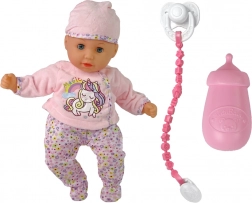 - Afneembare kleding: Roze pyjama, slabbetje en onderbroekje met eenhoorn zijn gemakkelijk uit te doen en te vervangen door een andere outfit.