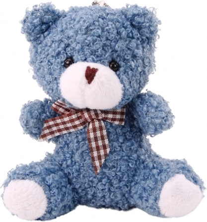 De blauwe pluchen teddybeer is een ideale vriend voor dagelijks spel en een geweldig cadeau voor ieder kind. Door zijn kleine afmetingen kan hij dienen als hanger die je aan sleutels, rugzak of tas kunt bevestigen. De beer heeft een bruine strik om de nek, wat hem elegantie en charme geeft.