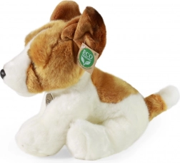 De pluchen hond heeft realistische kenmerken, waardoor het eruitziet als een echte Jack Russell Terrier.