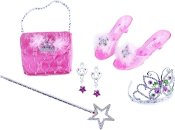 - Schoentjes, handtas, tiara met kroon, oorbellen, toverstokje