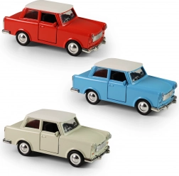 Ontdek een stijlvol verzamelstuk – metalen retro model Trabant met een lengte van ca. 12 cm. Dankzij de terugtrekmotor rijdt hij vlot weg, heeft openende deuren en maakt zowel kinderen als fanatieke autoverzamelaars blij.
