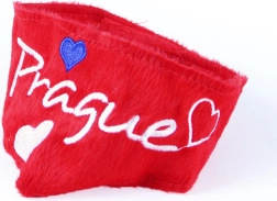 Stijlvolle rode sjaal met de opdruk Prague en hartjes geeft je pluchen dieren een unieke uitstraling. Zacht pluchen materiaal, comfortabel om te dragen en souvenirdesign – ideaal voor cadeaus en presentaties.