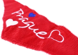 Geef je knuffels een vleugje flair en de charme van Praag. Deze rode pluchen sjaal met de borduurseltekst Prague en decoratieve hartjes voelt prettig aan, is licht en zacht voor pluchen oppervlakken. Past perfect op standaard knuffels van circa 30 cm.