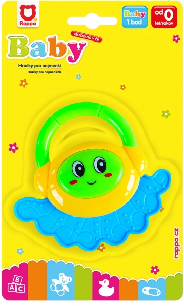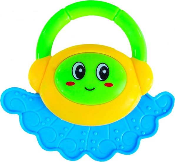 Een schattige rammelaar met een praktisch handvat voor de allerkleinsten, die plezier geeft met heldere kleuren en een aangenaam geluid. Ondersteunt de ontwikkeling van de fijne motoriek, visuele waarneming en sensorische stimulatie. Geschikt voor kinderen vanaf 3 maanden.