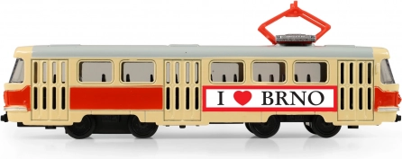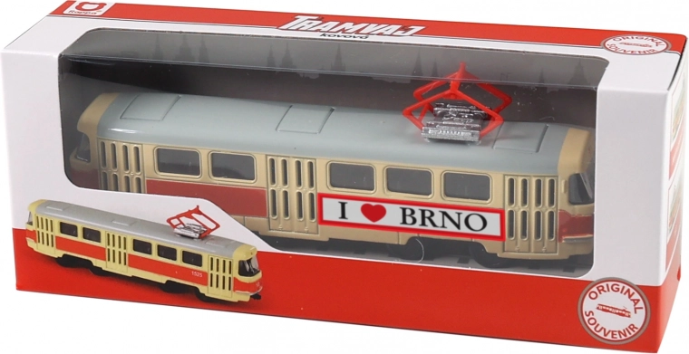 Deze gedetailleerd uitgewerkte retrotram van metaal in rood-beige uitvoering is een perfect souvenir uit BRNO en een origineel cadeau voor verzamelaars. In schaal 1:87 bootst hij de stadstram natuurgetrouw na, met de opvallende opdruk I ♥ BRNO en een functionerende pull-back voor leuk rijplezier.