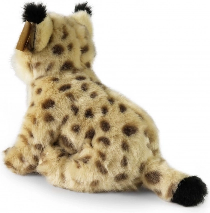Schattige pluchen lynx van 25 cm, gemaakt van hoogwaardig, zacht materiaal met een realistische uitstraling. Dankzij de eco-vriendelijke vulling van gerecyclede PET-flessen is hij veilig zelfs voor de allerkleinsten. Valt op door handwerkafwerking, zachte pluche en detailrijke elementen zoals zwarte kwastjes op de oren en gevlekte vacht.