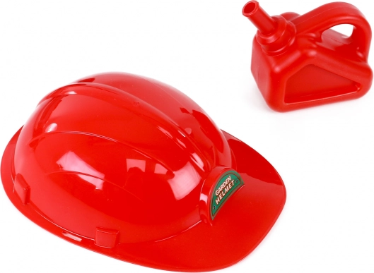 De set bevat ook een rode veiligheidshelm en een kleine jerrycan, waarmee kinderen veilig volwassen activiteiten kunnen nabootsen. Dit speelgoed biedt niet alleen plezier, maar bevordert ook de ontwikkeling van belangrijke vaardigheden zoals coördinatie en balans.