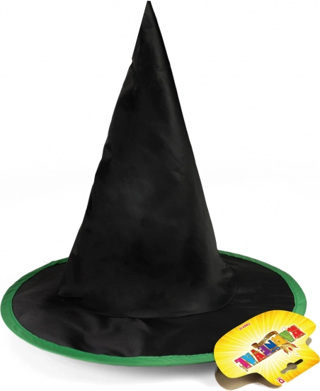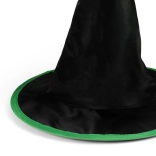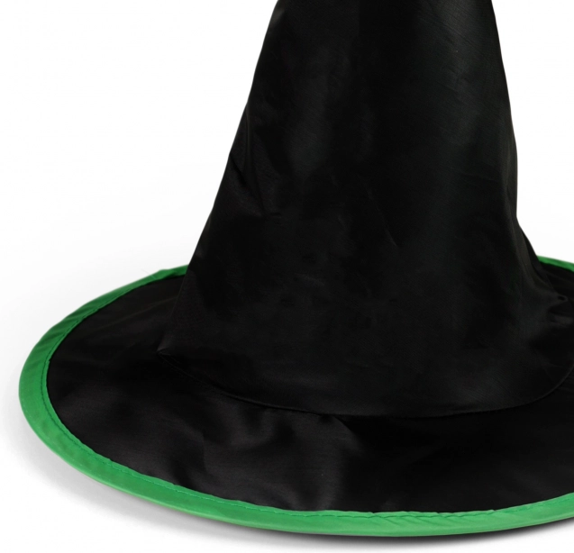 Volmaakt om een Halloweenkostuum aan te vullen van elke kleine tovenaar. Gemaakt van hoogwaardige zwarte stof, is de hoed versierd met een opvallende groene rand die de aandacht trekt.