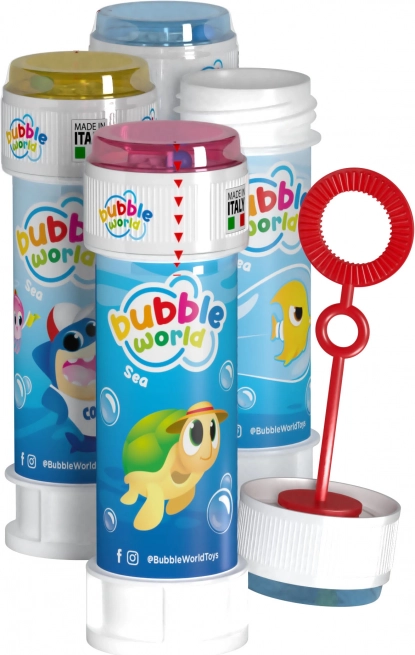 De bubbelblazer Waterwereld biedt urenlang plezier voor zowel kinderen als volwassenen. Met een inhoud van 60 ml is het ideaal voor speeltijd buiten en binnen. Dankzij de kleurrijke dop met een geïntegreerd spel zul je je nooit vervelen. Het maken van bellen is eenvoudig en leuk dankzij het praktische blaaspijpje in de dop.