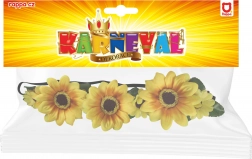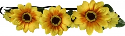 Deze haarband is versierd met drie grote gele bloemen, die de aandacht trekken en uw uitstraling frisheid en originaliteit geven. De haarband is comfortabel dankzij de elastische bevestiging, die zorgt voor een veilige en comfortabele pasvorm, de hele dag lang.