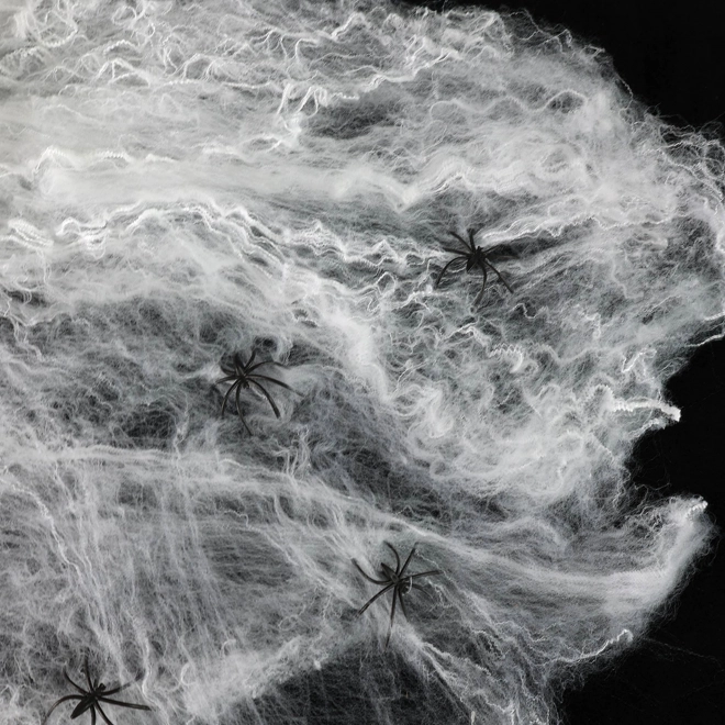Creëer een griezelige sfeer met dit spinnenweb, ideaal voor een Halloween-feest. Geschikt voor binnen en buiten en wordt geleverd met 4 plastic spinnen.