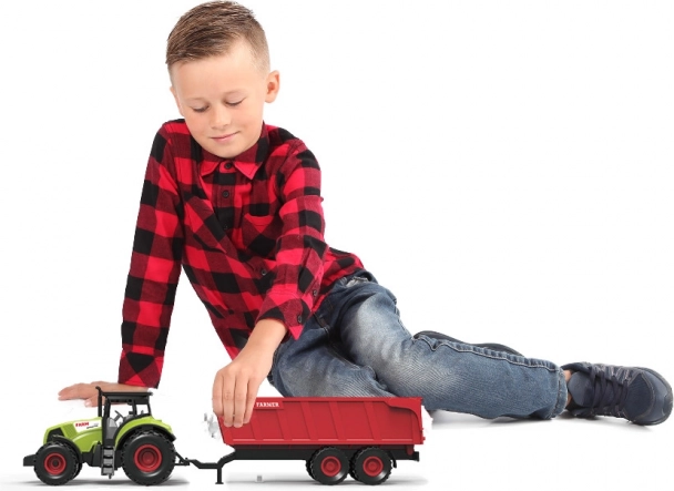 Een moderne tractor met rode aanhanger uit de collectie Mijn kleine boerderij zal elke kleine boer blij maken. Biedt licht- en geluidseffecten, een flywheel voor soepel rijden en een afneembare aanhanger voor nog meer speelmogelijkheden. Batterijen zijn bij de verpakking inbegrepen.